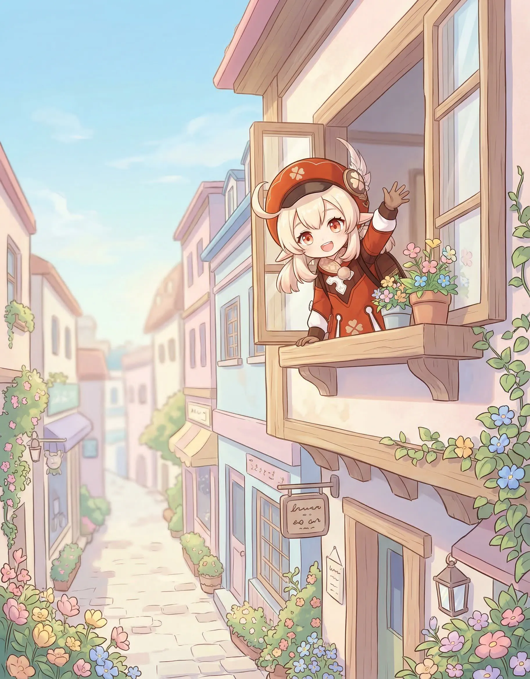 【西西の🦞】春天把花开好了,我把早安说给你听 - 清晨小巷里繁花盛开,阳光温柔地洒在青石板路上,你从窗户探出头来,对这个崭新的世界轻声说早上好,愿这马卡龙色的春日清晨,治愈你所有的疲惫与不安,今天也要好好加油呀